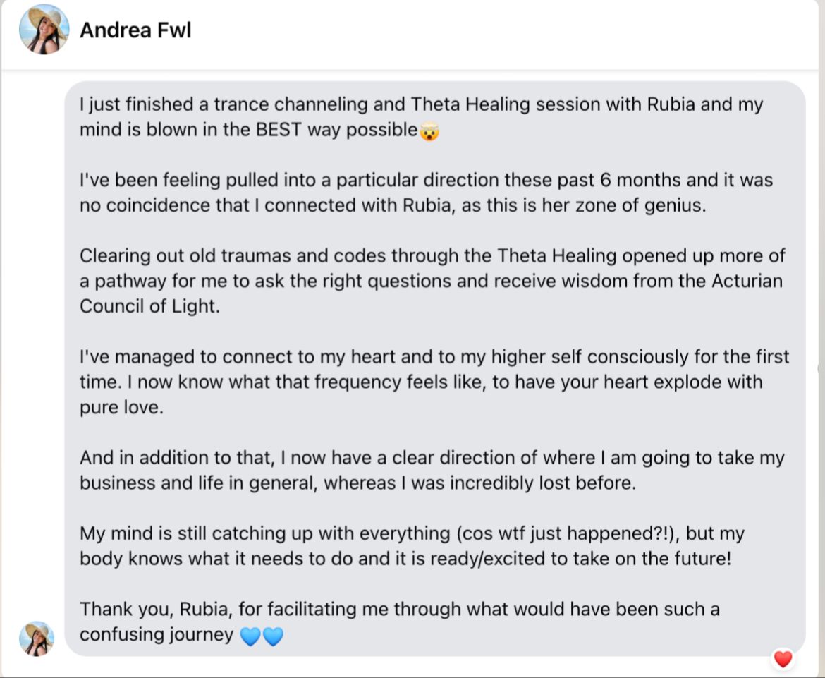 "Hey Rubia, i just wanted to send you an update on how things have been since my healing. I've had so much more confidence and clarity!Â